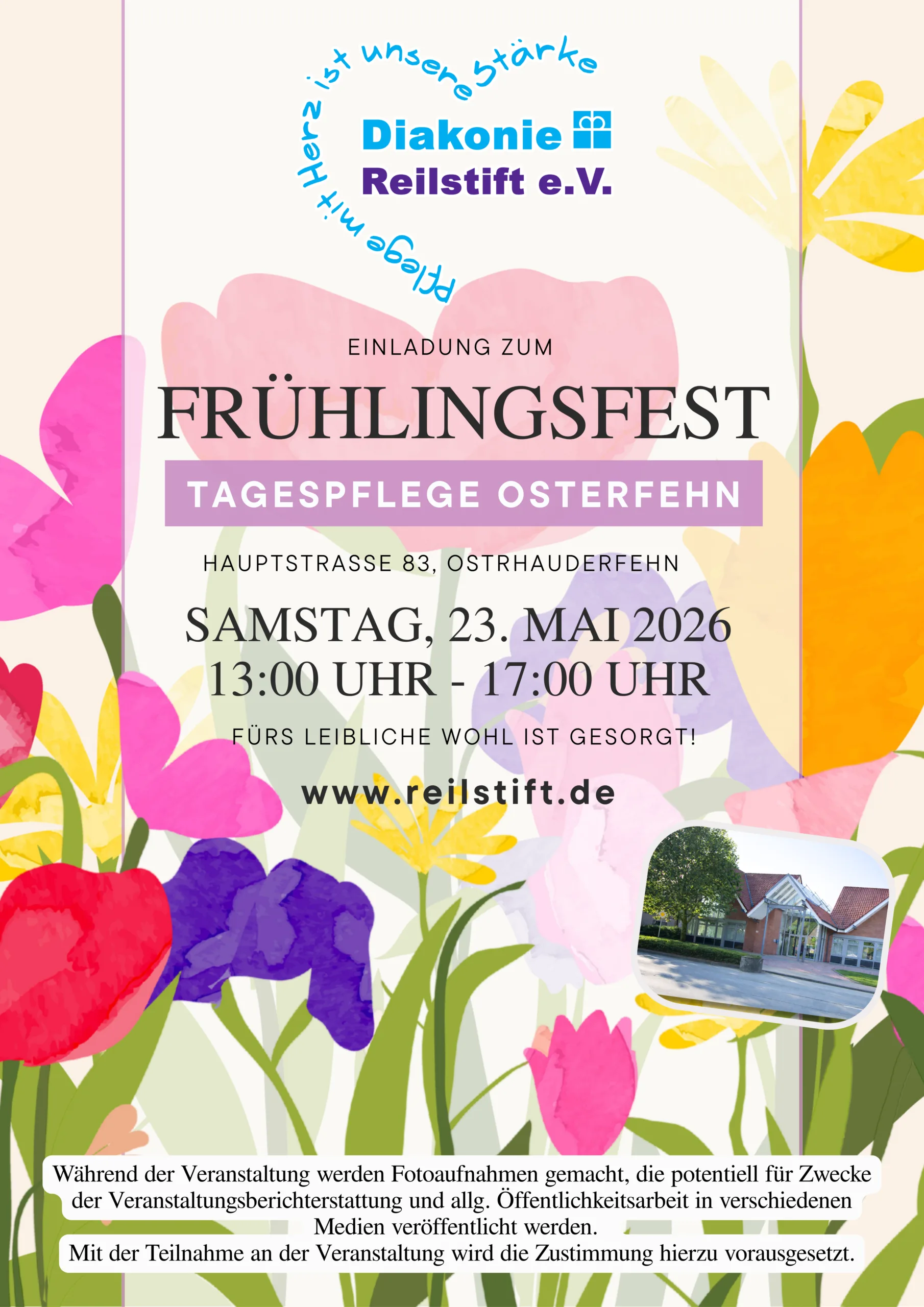 Datum: Samstag, 23. Mai 2026Uhrzeit: 13:00 – 17:00 UhrTagespflege Osterfehn, Hauptstraße 83, Ostrhauderfehn