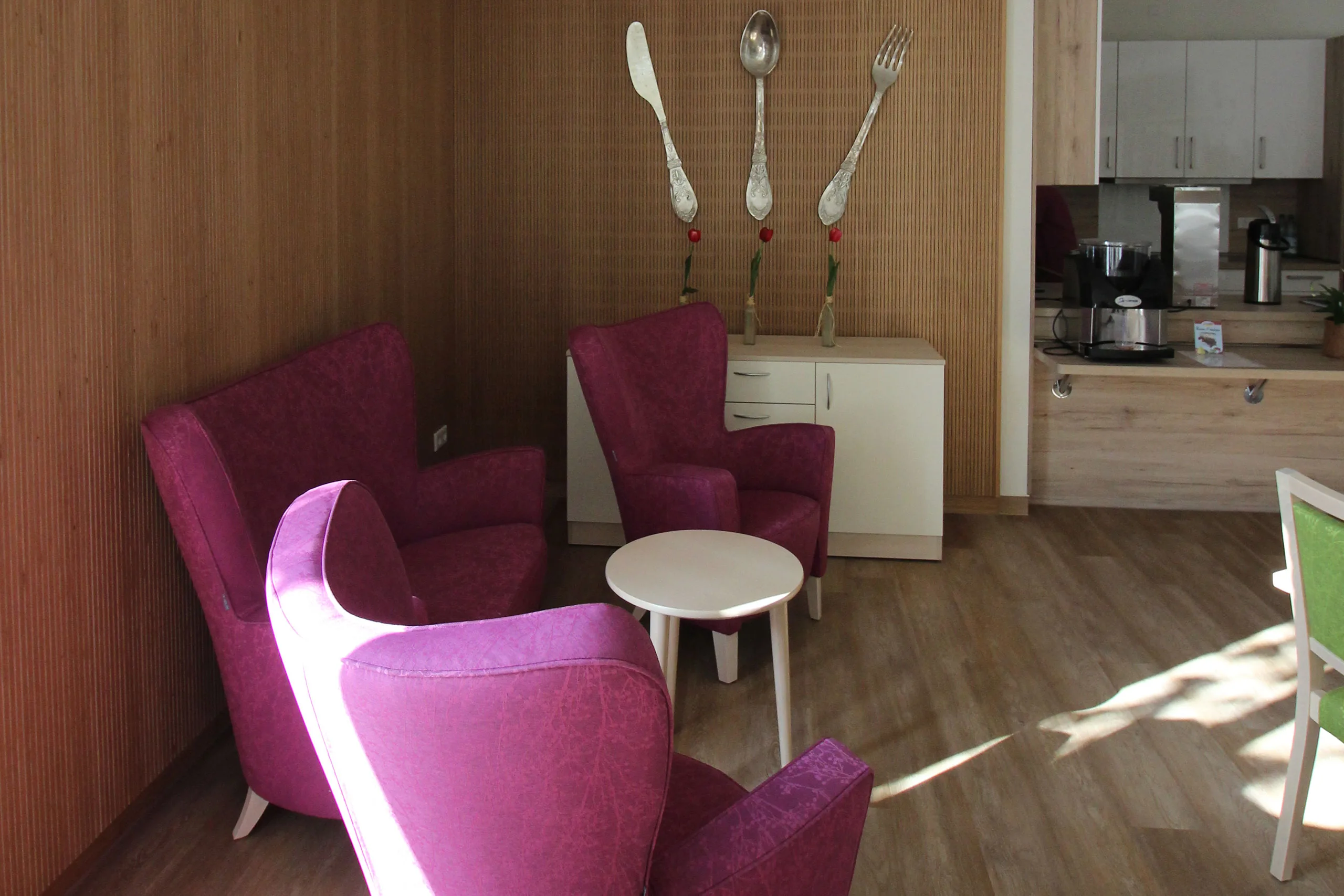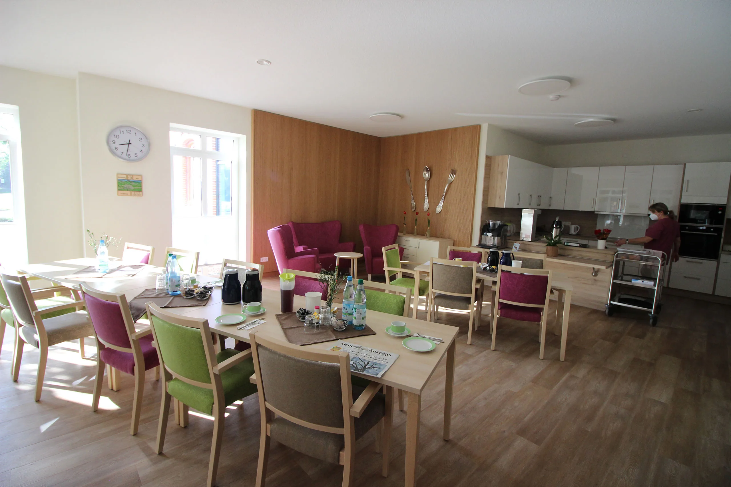Unsere Gäste sollen sich wohlfühlen und wohlbehütet eine Abwechslung zu ihrem gewohnten Alltag erleben können. In einem großen Gruppenraum mit angrenzender offener Küche, in der auch selbst gekocht, gebacken etc. werden kann, trägt aktiv und passiv erlebte Gemeinschaft zum Wohlbefinden bei. Gespräche, Gesellschaftsspiele, Seniorengymnastik, Vorleserunden etc. runden das Angebot ab.